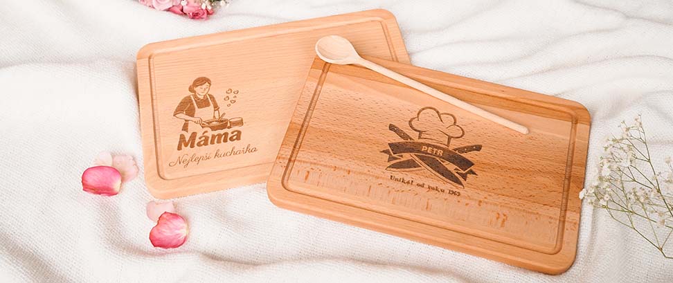 Prkénko ze dřeva s gravírováním je především originální dárek, který potěší. Bukové prkénko s jemnou kresbou dřeva pro vás doplníme textem i obrázkem podle vašeho zadání. Společně tak proměníme kuchyňskou krájecí desku na personalizovaný unikát, který nikoho nenechá na pochybách, kdo vaří nejlépe!