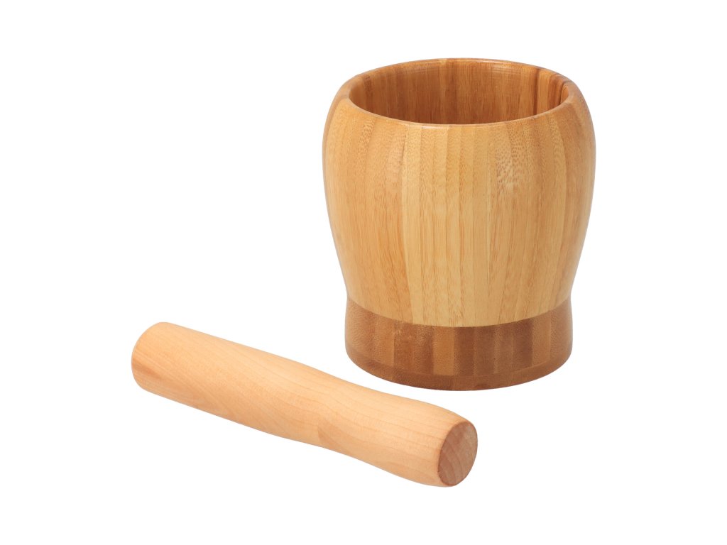 Hmoždíř a tlouček z kvalitního bambusového dřeva rychle rozdrtí koření i bylinky na jemný prášek. Dochucování polévek nebo omáček bude s tímto praktickým pomocníkem doslova hračka.