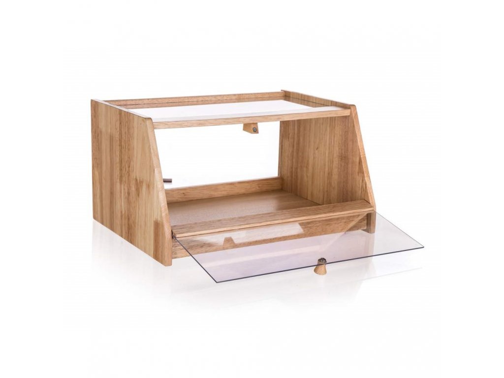 Chlebník vyrobený z kvalitního gumovníkového dřeva a akrylátovým víkem se postará o to, aby vaše pečivo zůstalo déle křupavé a čerstvé.