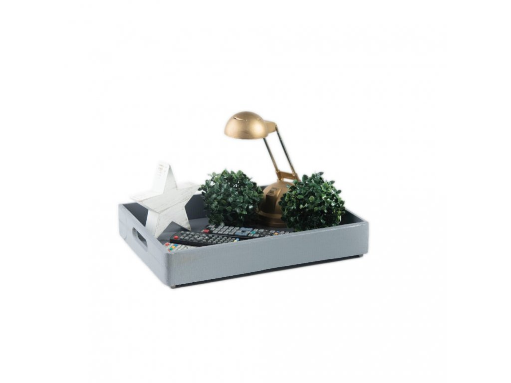 Šedá dřevěná bedýnka se dá skvěle využít jako tác na přenášení drobných věcí, ale také na uložení různých věcí.