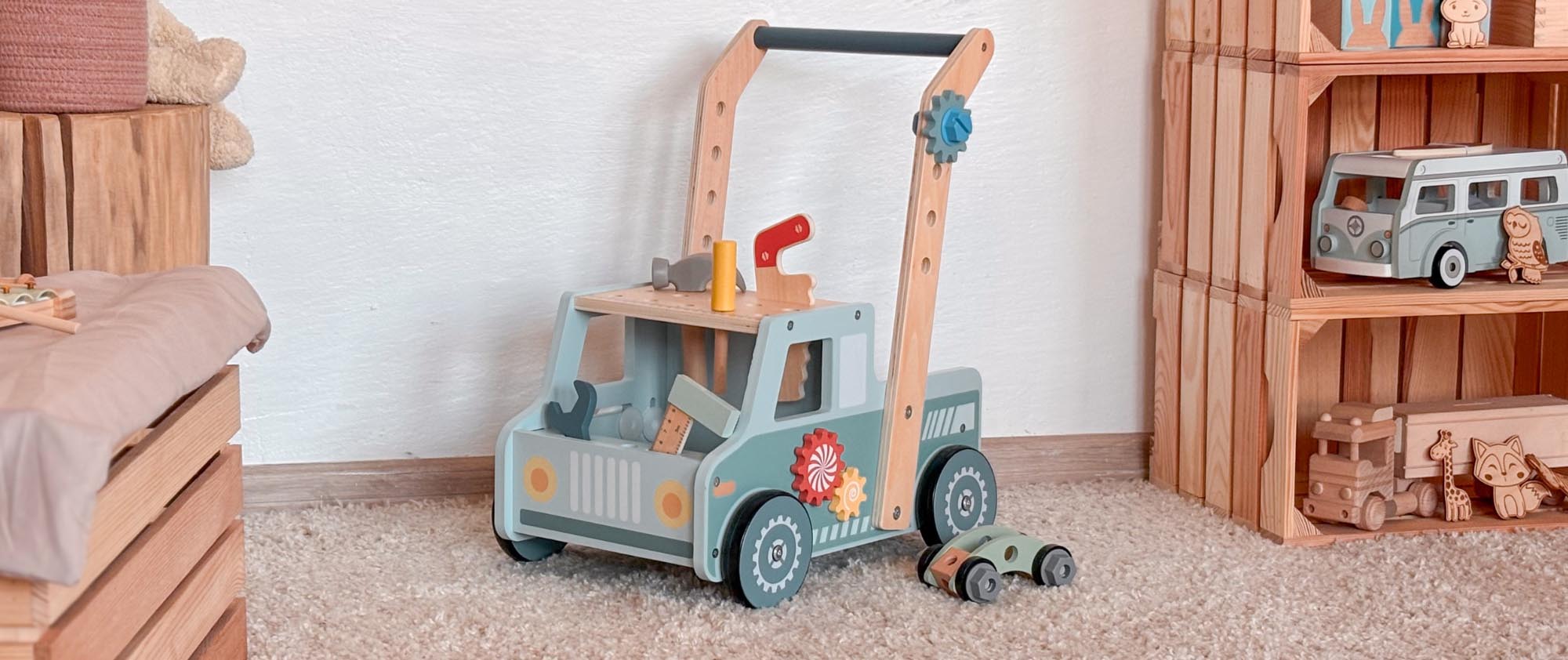 Dřevěná chodítka pro děti jsou ideální pomůckou pro první krůčky a zdravý vývoj pohybu. Dřevěné chodítko s aktivitami podporuje motoriku, koordinaci i rovnováhu dítěte. Díky stabilní konstrukci a kvalitnímu zpracování jsou tato chodítka bezpečná a vhodná pro děti od 1 roku. Kombinace hračky a praktické pomůcky dělá z dřevěného chodítka jeden z nejoblíbenějších dárků pro nejmenší děti.