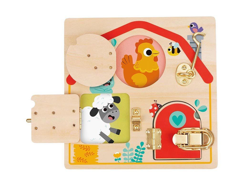 Zábava, která děti nejen baví, ale i rozvíjí. Dřevěná hrací deska se zámečky nabízí pestrou škálu aktivit, díky nimž děti objevují svět otevírání, zavírání a mechanických principů hravou formou. Každý prvek na desce ukrývá nové překvapení a motivuje k dalšímu zkoumání.