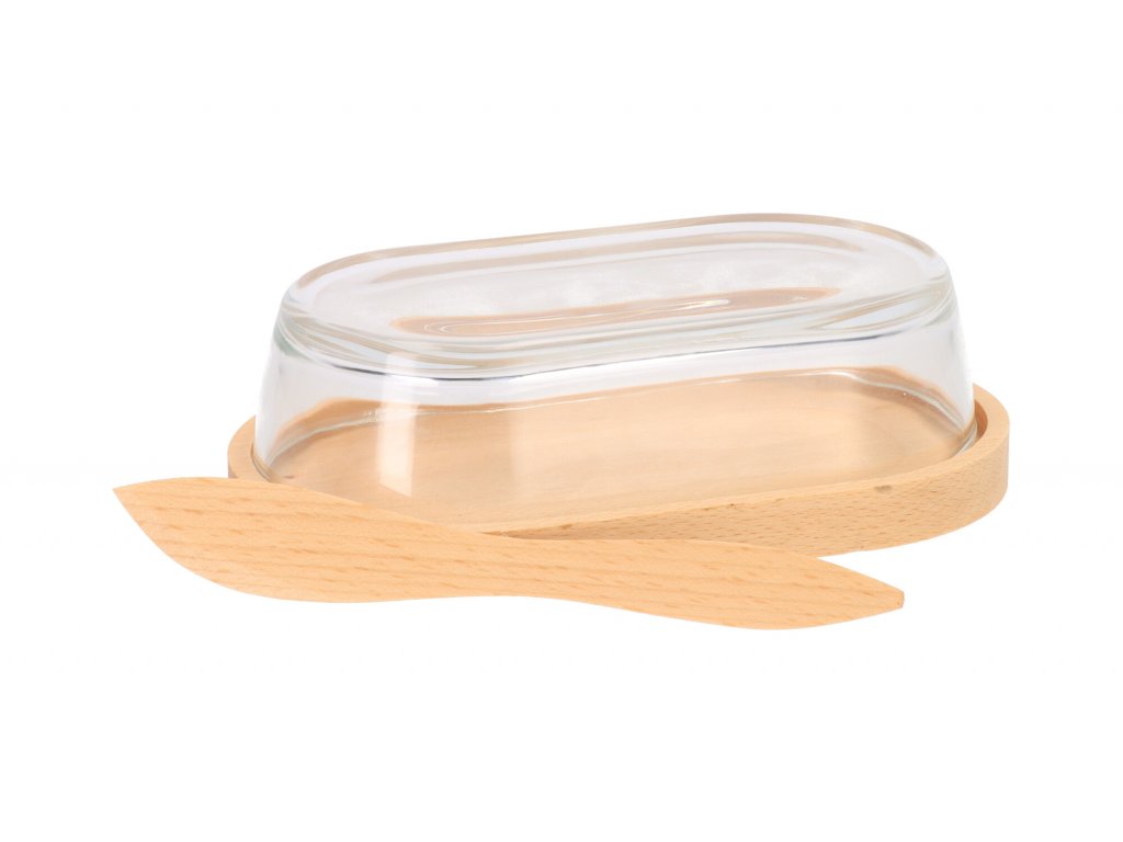 Dřevěná máslenka vám poslouží k prodloužení čerstvosti másla, které díky skleněnému poklopu neoschne a ani nenačichne ostatními potravinami v lednici. Díky vkusnému vzhledu ji navíc můžete použít k rannímu servírování másla u snídaně nebo svačiny a s roztíráním vám pomůže dřevěný nůž na máslo.