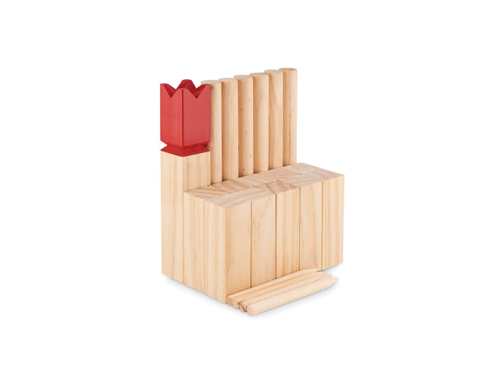 Hra je vyrobena z kvalitního borovicového dřeva, které zajišťuje dlouhou životnost a příjemný přírodní vzhled. Celá sada je prakticky uložená v bavlněném sáčku se stahovací šňůrkou, díky čemuž ji snadno přeneseš na zahradu, do parku, na pláž nebo na dovolenou.