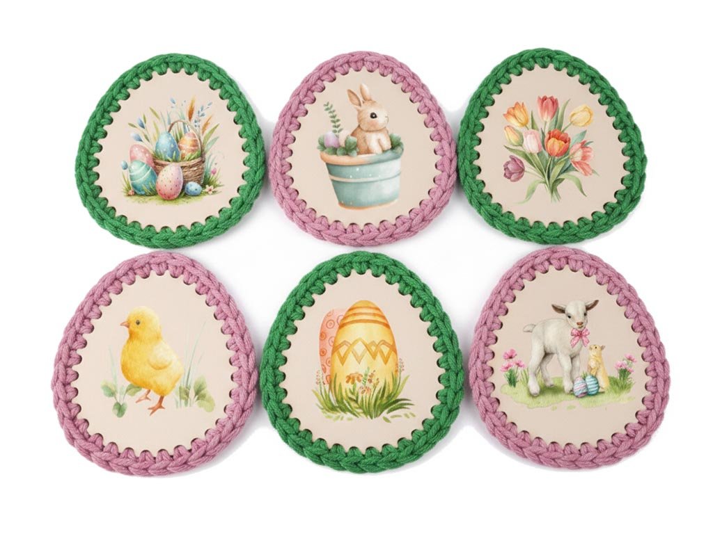 Připravte svůj domov na jarní svátky s originálními dřevěnými velikonočními kraslicemi, které si můžete sami kreativně obháčkovat! Sada obsahuje 6 kusů a každá kraslice je vyrobena z kvalitní březové překližky, což zaručuje pevnost a dlouhou životnost dekorace.