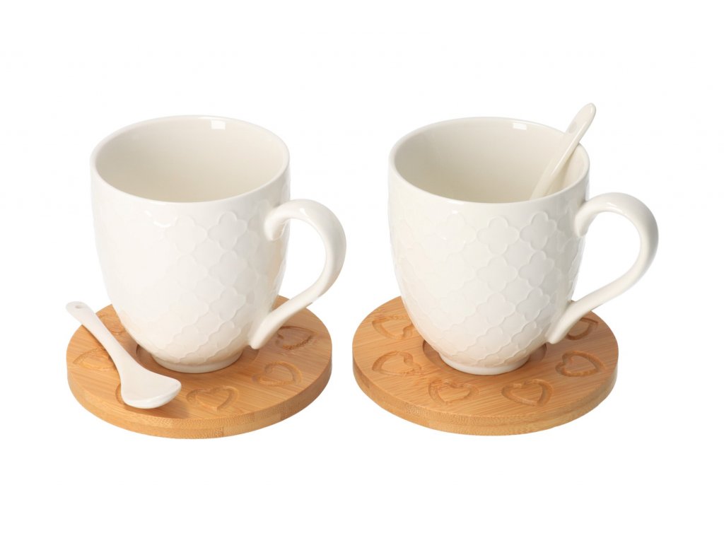 Balení obsahuje 2 komplety ( podtácek, hrníček, lžička).