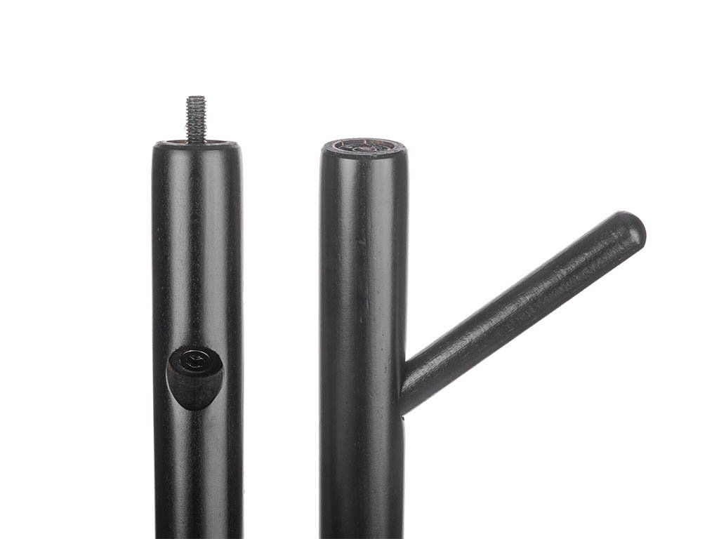 Moderní stojanový věšák z pevného bukového masivu v černém provedení zaujme svým minimalistickým designem. Odolná konstrukce zajišťuje stabilitu při každodenním používání a poskytuje velkorysý prostor pro kabáty, tašky i šály. Ideální doplněk do moderních interiérů.