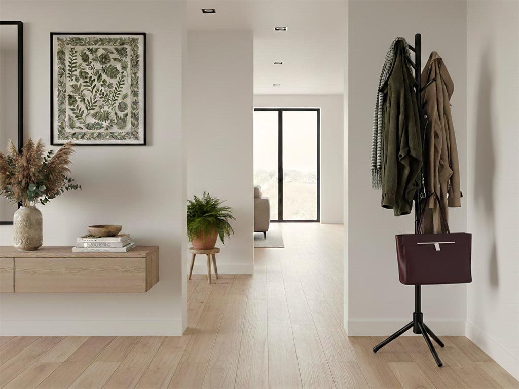- Úspora místa - stojanový věšák zabere minimum prostoru - skvělý do malých předsíní i úzkých chodeb.