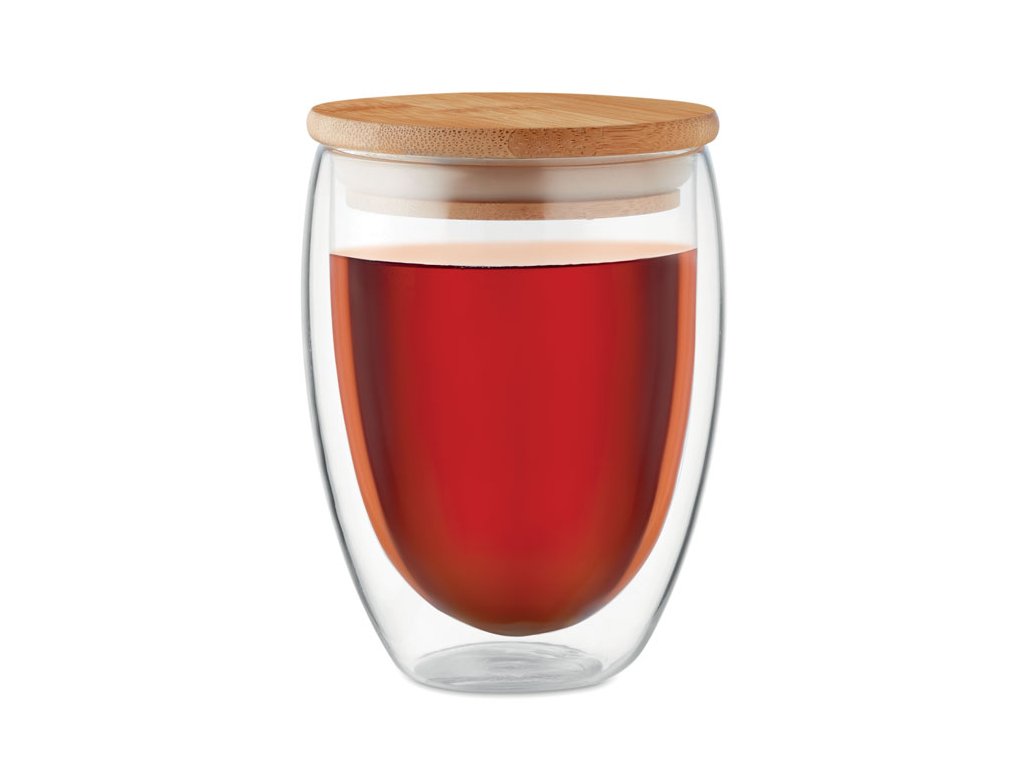 Dvoustěnná sklenice s bambusovým víkem - 350 ml