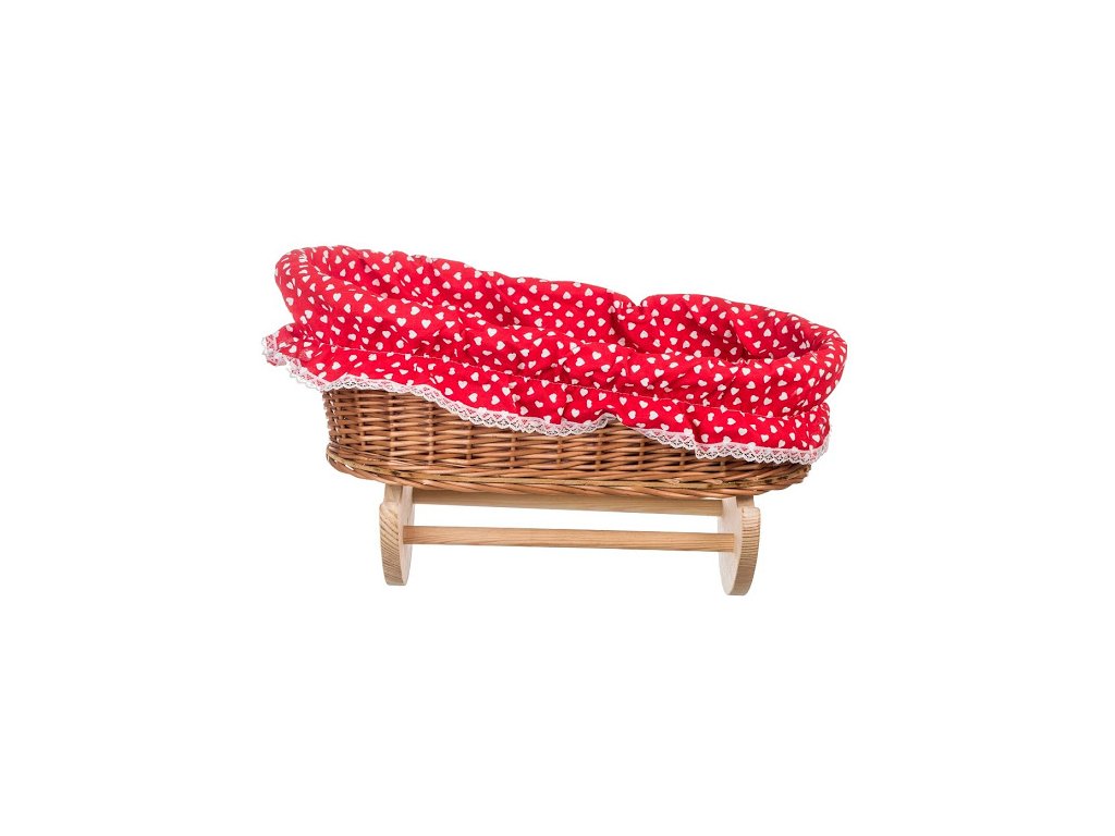 Tradiční proutěná kolébka pro panenky je oblíbenou hračkou každé malé slečny. Součástí je látkové obšití a polštářkek s peřinkou.