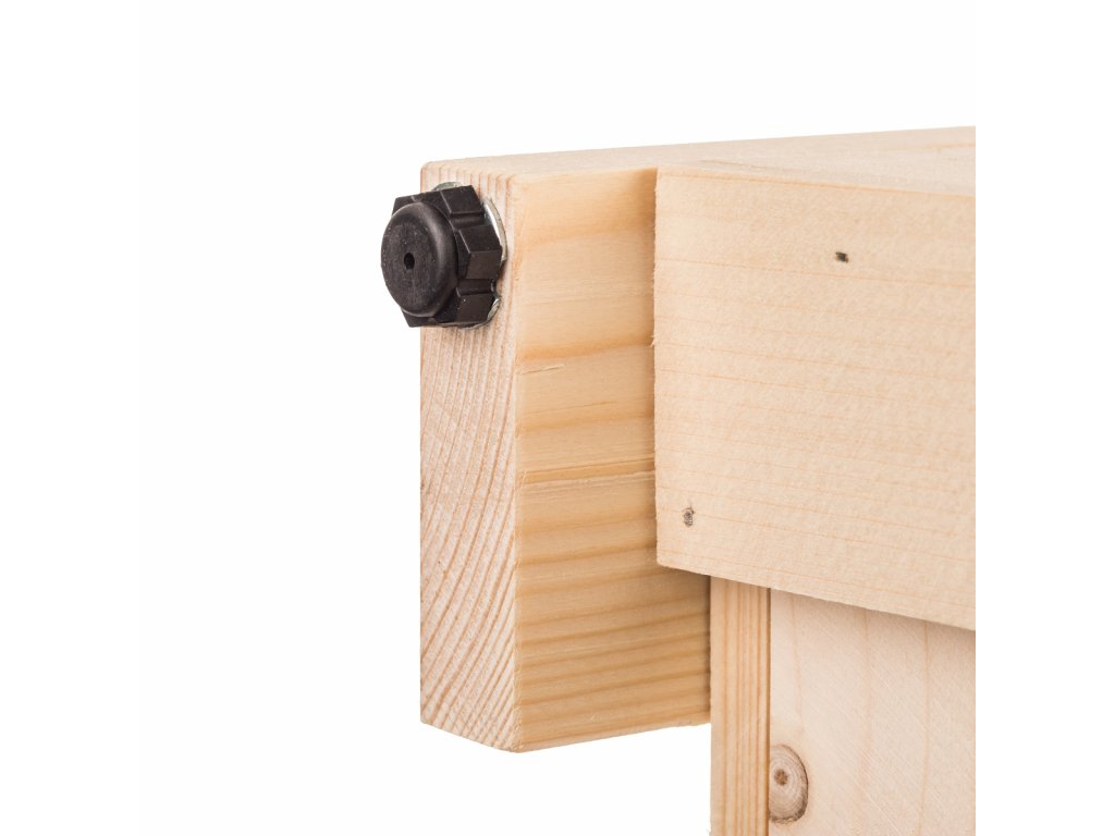 Regál má 3 police a každá z nich má nosnost 40 kg. Celková nosnost regálu je 120 kg a rozměr dřevěné nohy je 2 x 7 cm.