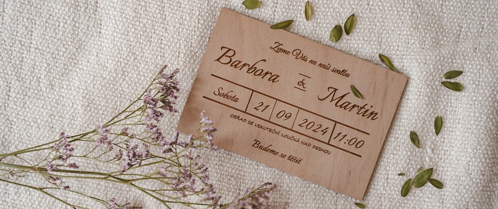 Plánujete svatbu a hledáte inspiraci na originální svatební pozvánky a oznámení? Vypálíme vám do dřevěné překližky cokoliv dle vašich představ a přání. A pokud se na svatbu chystáte jako host, pak můžete novomanželům darovat dřevěné přání na míru s osobním vzkazem, které zaručeně potěší.