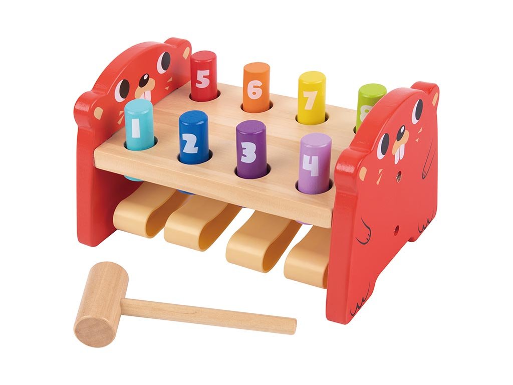 Bezpečná zatloukací hra zdokonaluje úchop, soustředění a koordinaci pohybů dětí, především ale poskytuje hodiny zábavy a smíchu. Hrajte si společně s dětmi a rozvíjejte jejich dovednosti!